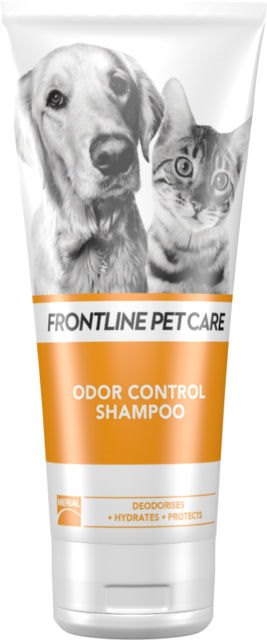 שמפו איכותי מבית פרונטליין לכלבים וחתולים, מפחית ריח רע מהפרווה ומונע ריח זיעה.
